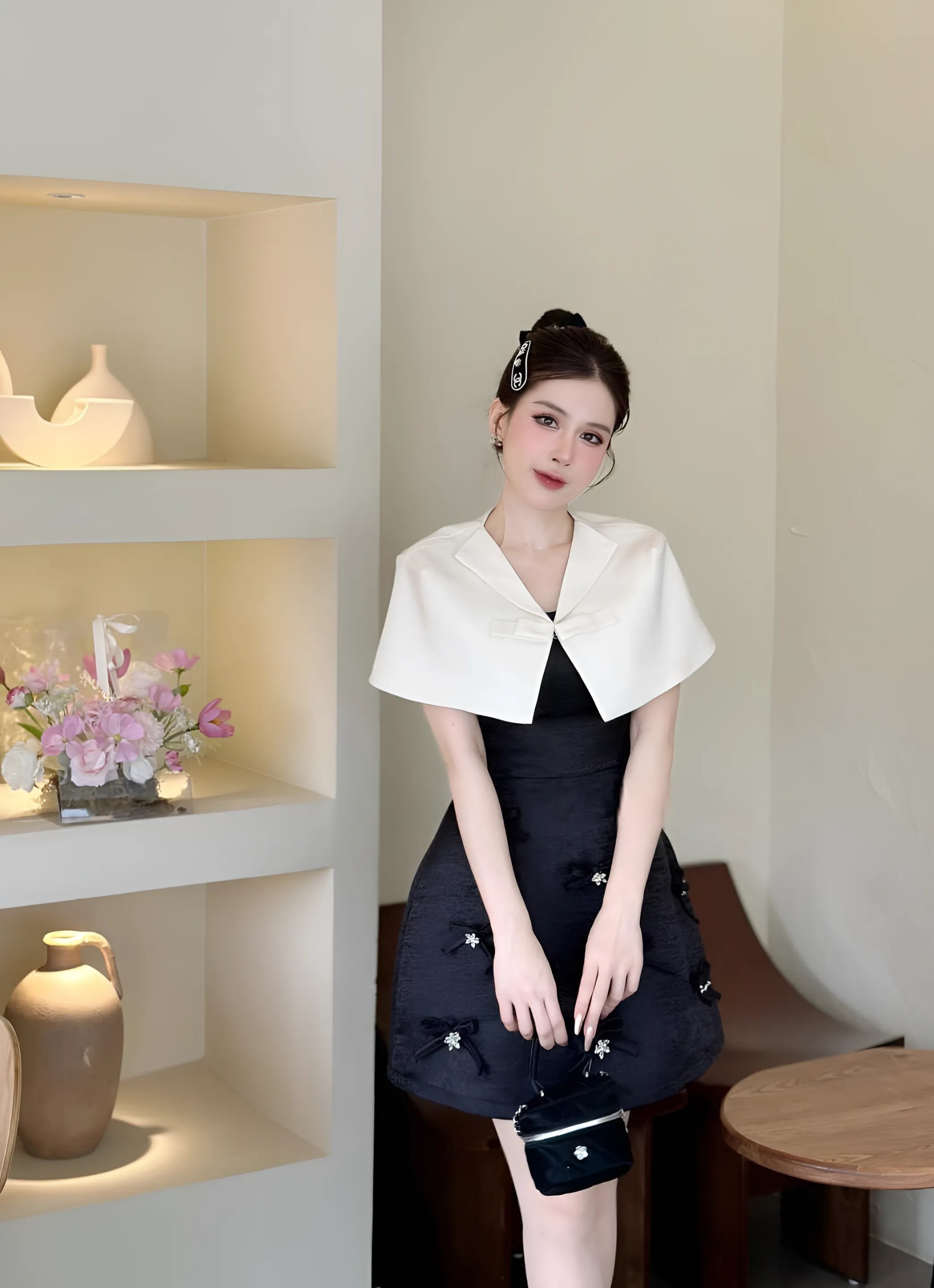 – Bộ sản phẩm gồm: 1 Váy/1 Áo choàng/Tag cài